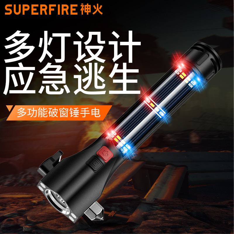 √ T6级大灯珠手电筒,升级侧面探照灯+警示灯充电宝+指南针+警报器多重功能;