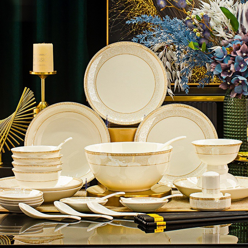 【精选陶瓷. 乔迁送礼】景德镇陶瓷「映雪」家宴套装(38件套,适合3~5人家庭)