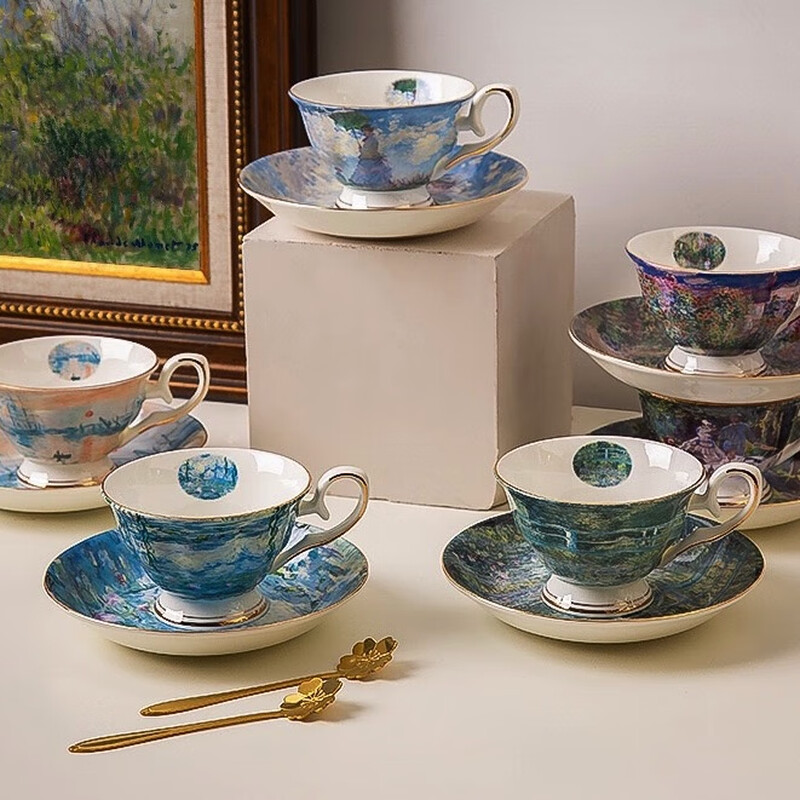 【Luna Isle 觅月岛】莫奈油画系列轻奢欧式「骨瓷」杯碟套装