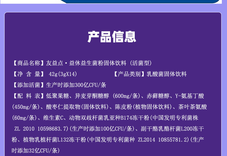 友益点【益休】益生菌1盒装(3g*14条 )