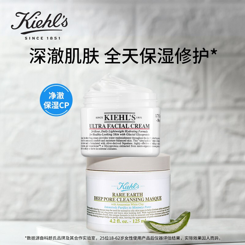 Kiehl’s科颜氏毛孔净化修护套组(白泥面膜125ml+高保湿面霜50ml)