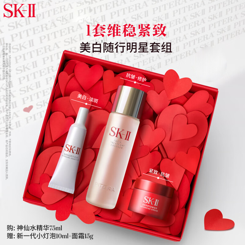 首页 > 护肤美妆 > 面部护肤 > 护肤套装 >  SK-II抗皱水乳护肤品套装(神仙水75ml+大红瓶面霜15g+小灯泡精华10ml)