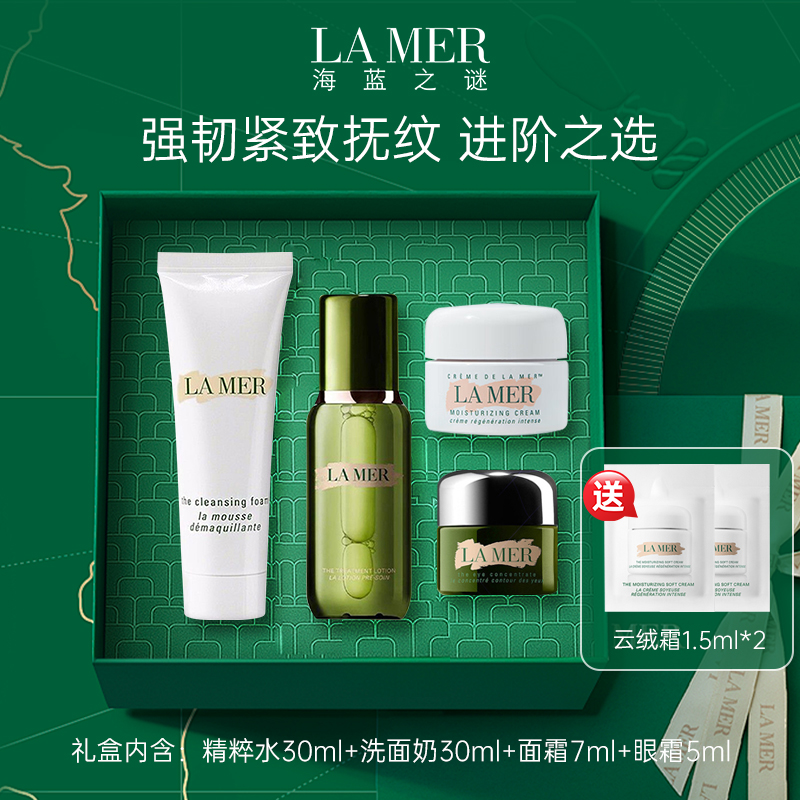 LA MER海蓝之谜明星护肤小样四件套(精粹水30ml+洗面奶30ml+面霜7ml+眼霜5ml)送云绒霜1.5ml*2片
