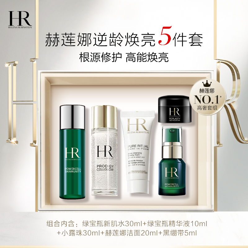 HR 赫莲娜逆龄焕亮5件套礼盒(新肌水+绿宝瓶+洁面+黑绷带+小露珠)