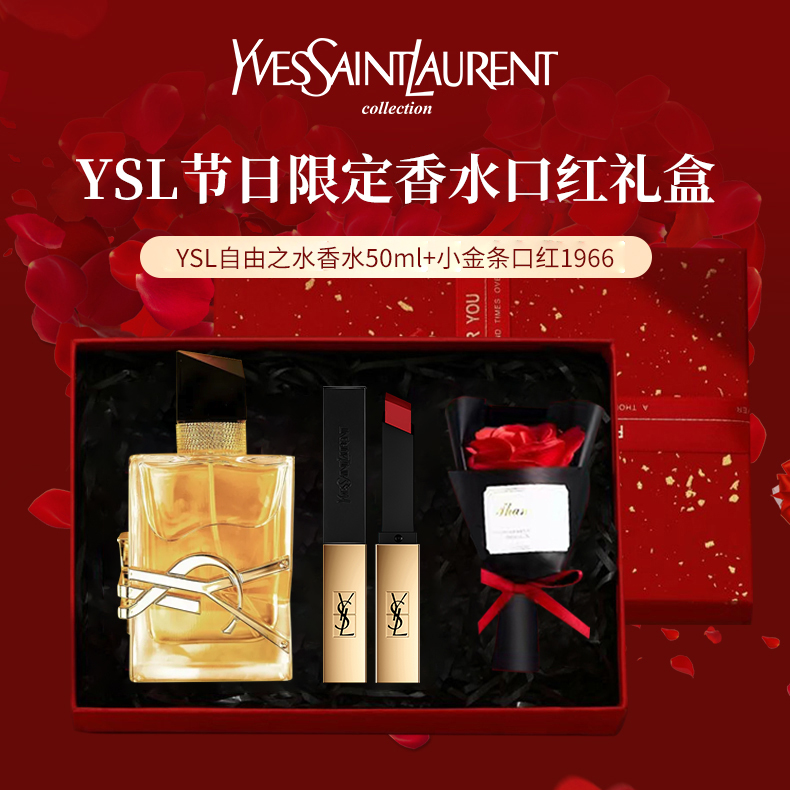 YSL 圣罗兰节日限定香水口红礼盒(自由之水50ml+小金条口红1966)