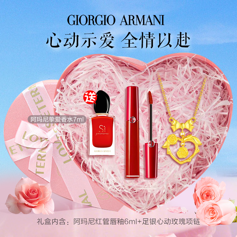 Armani阿玛尼红管唇釉情人节心动礼盒(送阿玛尼挚爱香水 7ml+YOUSOO足银心动玫瑰项链)