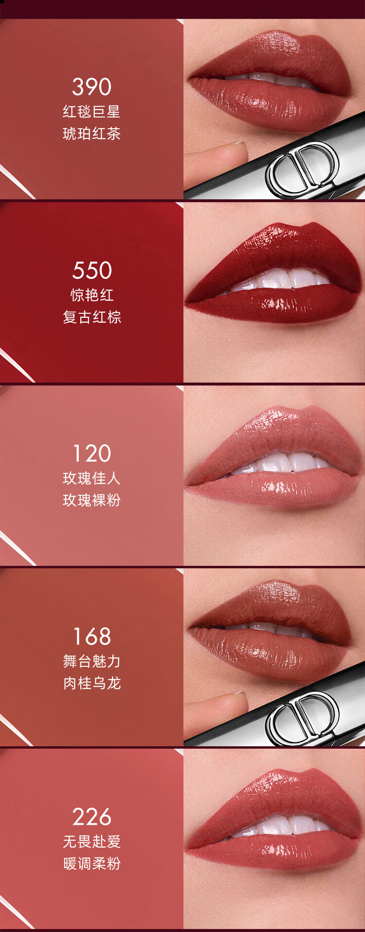 #390琥珀红茶+#168肉桂乌龙+#550复古红棕+#226暖调肉粉+#120玫瑰裸粉