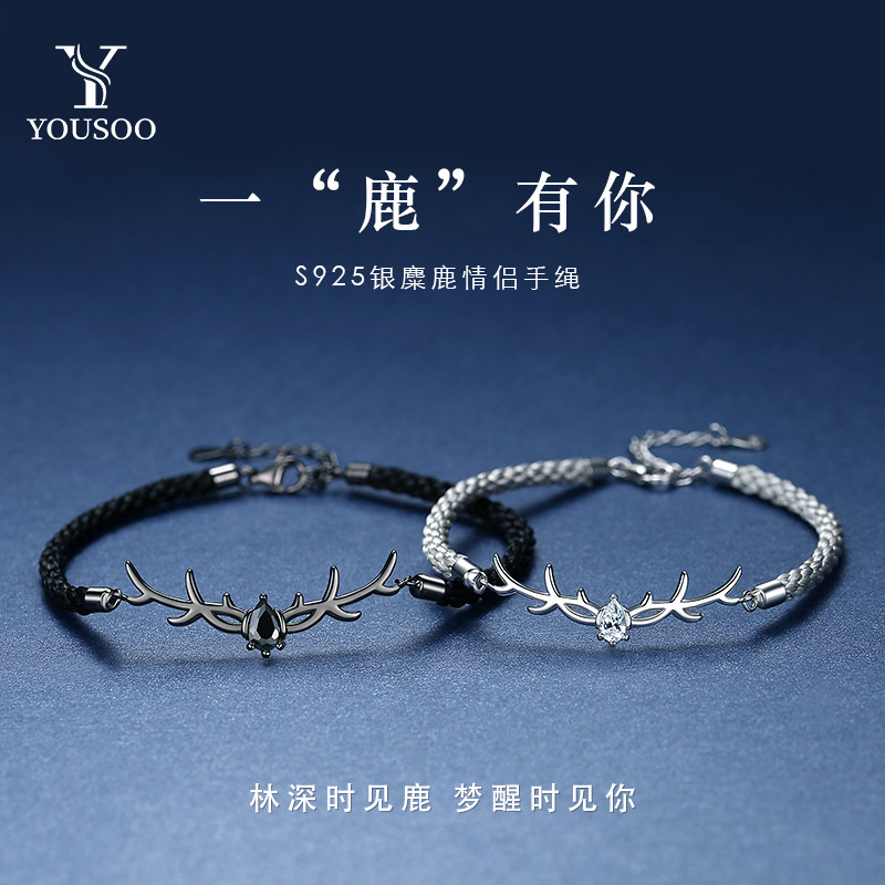 首页 > 珠宝首饰 > 手链/手镯 >  【YOUSOO】一鹿有你系列 S925银情侣手链一对