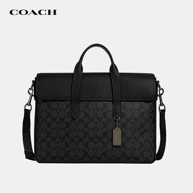 【COACH蔻驰】大号牛皮革C纹印花拼色男士公文包C9873