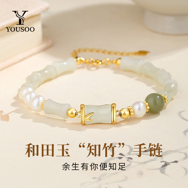 首页 > 珠宝首饰 > 手链/手镯 >  【YOUSOO】925纯银知竹和田玉珍珠手串