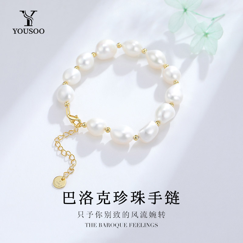 【YOUSOO】S925银「巴洛克」淡水珍珠手链