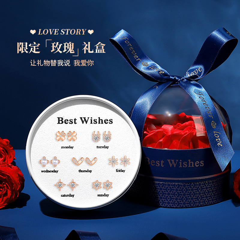 星期耳钉藏于限定玫瑰礼盒,七日浪漫不重样