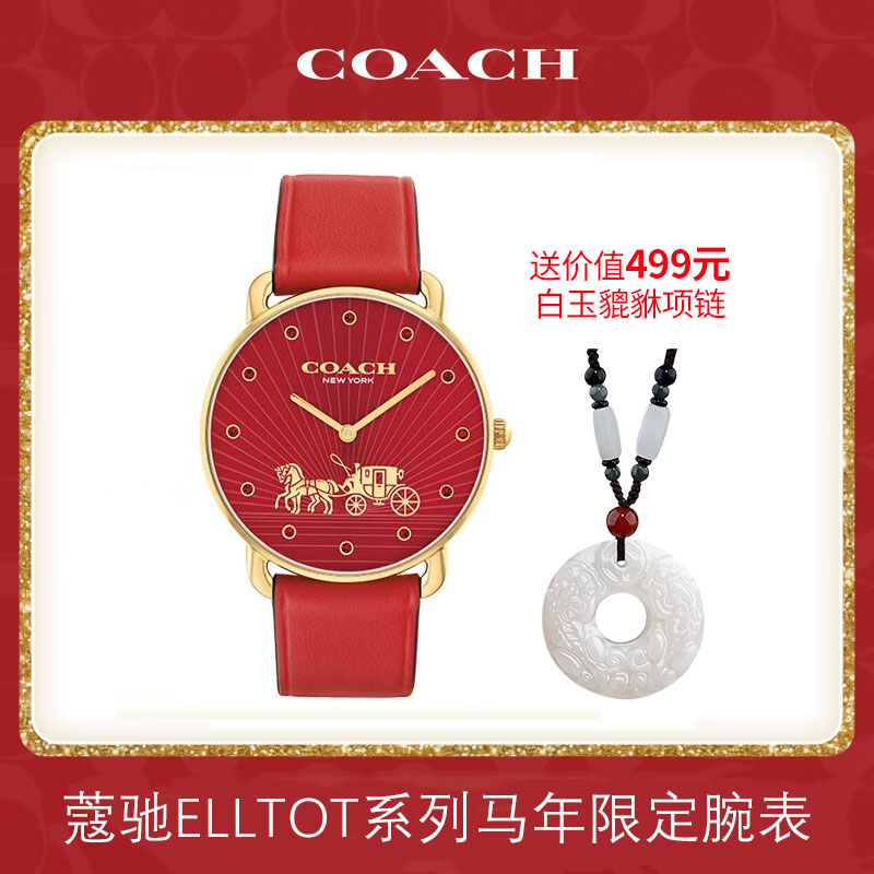 COACH蔻驰ELLIOT系列 「马年限定款」 石英腕表(送白玉貔丘项链)