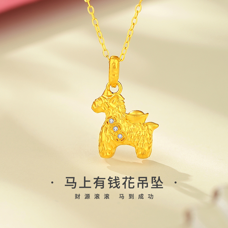 18金生肖小马吊坠,闪耀灵动藏好运,戴出福气与精致~