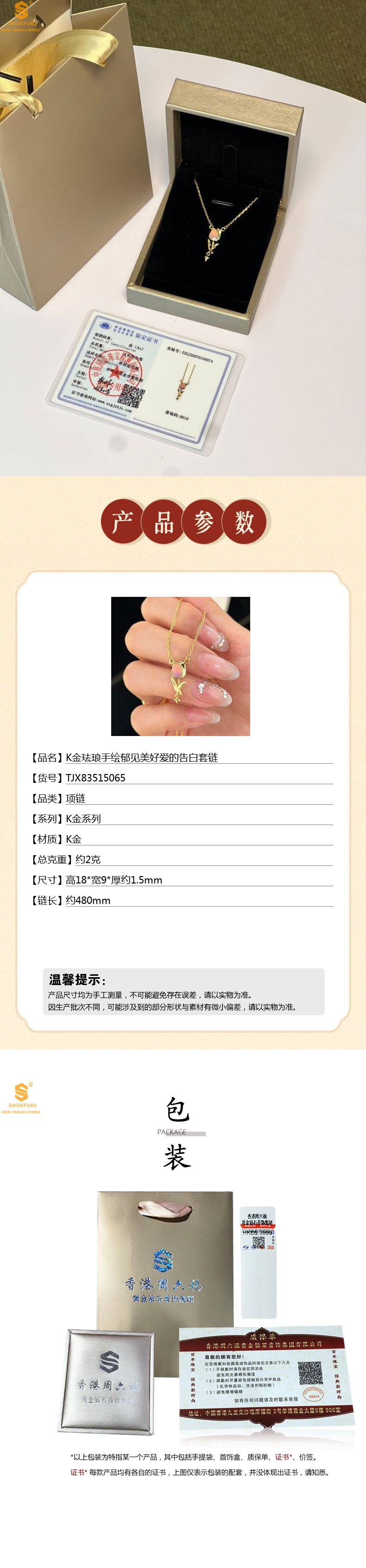 【香港周六福】珐琅手绘郁见美好爱的告白项链K金(配证书)
