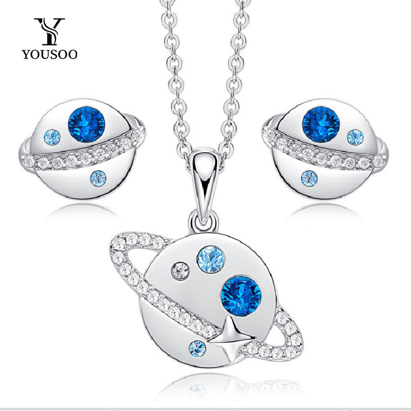 【YOUSOO】专利设计款S925银时尚蓝色星球项链+流浪地球耳钉(首饰套装)