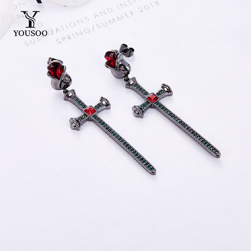 首页 > 珠宝首饰 > 耳饰 >  【YOUSOO】爱的救赎 欧美复古施华洛世奇元素玫瑰花十字架耳环