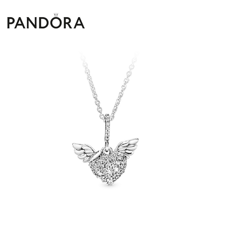 Pandora潘多拉 密镶天使之翼少女心爱心项链